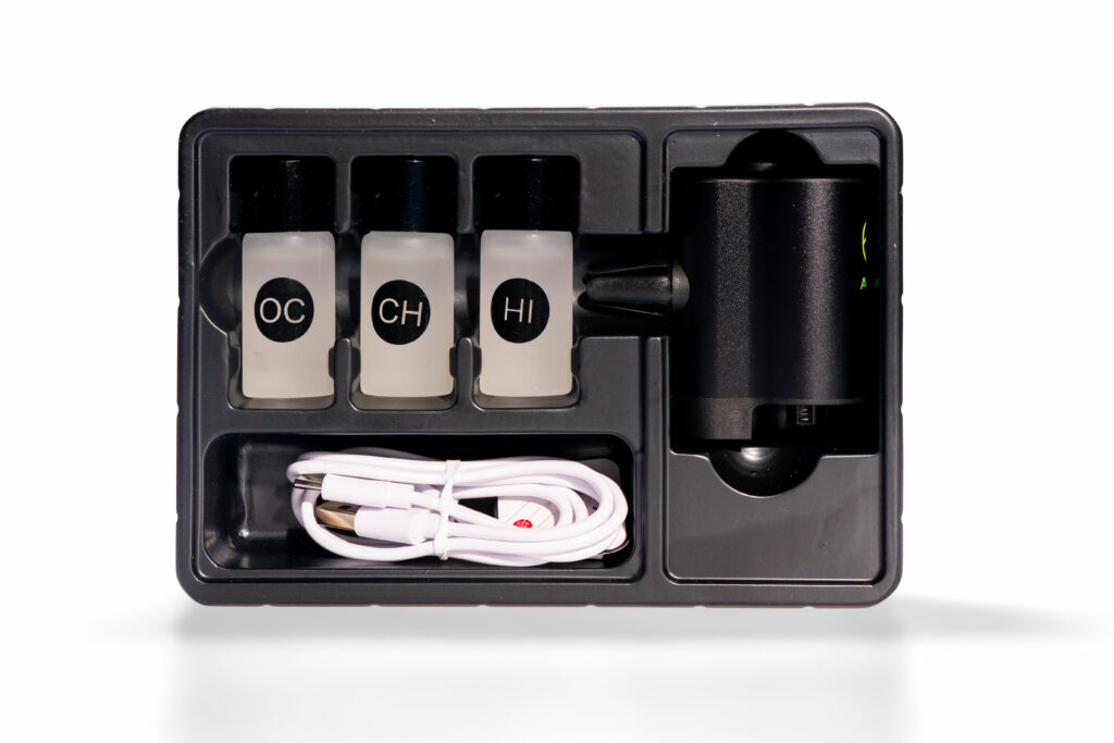 Pachetul conține un difuzor auto din aluminiu, ușor de montat pe grila de ventilație, 3 flacoane cu ulei esențial natural (CH, HI și OH), un cablu USB-C pentru încărcare, și instrucțiuni de utilizare. Toate elementele sunt livrate într-o cutie compactă, gândită de noi pentru a oferi clienților o experiență premium încă de la despachetare. Nu trebuie să-ți mai faci griji dacă este un produs de calitate – ai în față un difuzor durabil, testat și apreciat pentru eficiență și design.